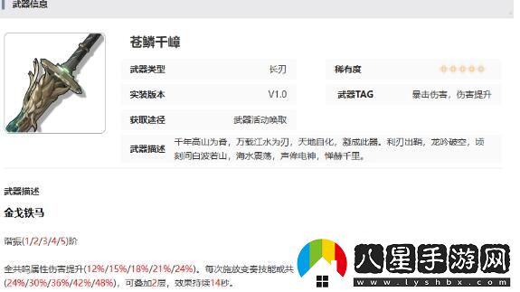 1、武器類型:長(zhǎng)刃